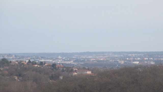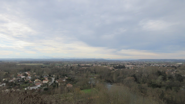 Au fond : la chaîne des Pyrénées enneigée qui barre magnifiquement l'horizon au Sud, du Canigou aux Gabizos ! :