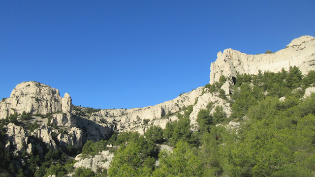 De gauche à droite : la Grande Candelle, le Baou Rond, la calanque et la crête de Sormiou.
